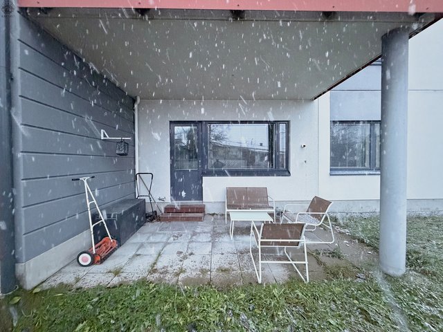 Ihastuttava kerrostalo kaksio, aurinkoisella takapihalla. Tässä kodissa asut kuin rivitalossa.