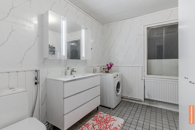 - Tilavan wc:n yhteydessä kodinhoitotilaa ja pesukoneliitäntä.