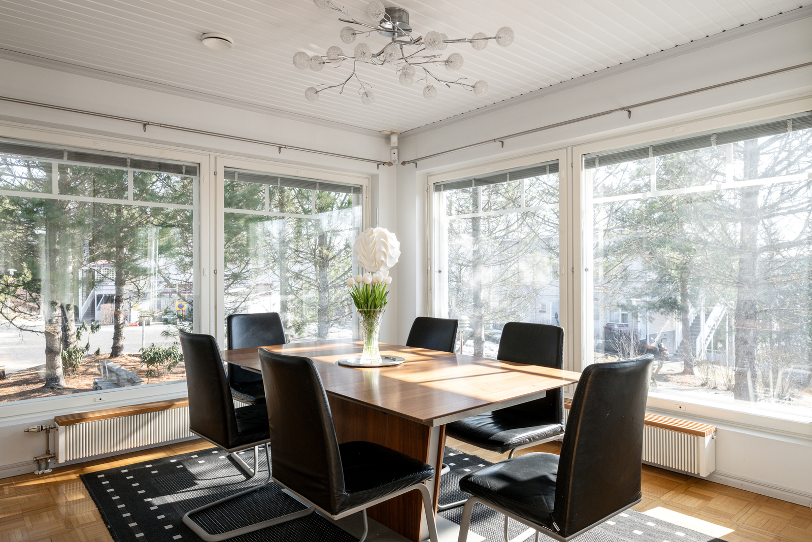 Talo tarjoaa erinomaiset puitteet isommankin perheen arkeen: kolme tilavaa makuuhuonetta, avara olohuone sekä viihtyisä takkahuone luovat mukavat ja toimivat asuintilat. Vuonna 2014 uusittu, tyylikäs keittiö ruokailutiloineen on kokkaajan unelma; laadukkaat Scavolinin kaapistot ja Gaggenaun uuni nostavat ruoanlaiton uudelle tasolle.