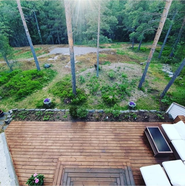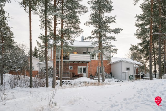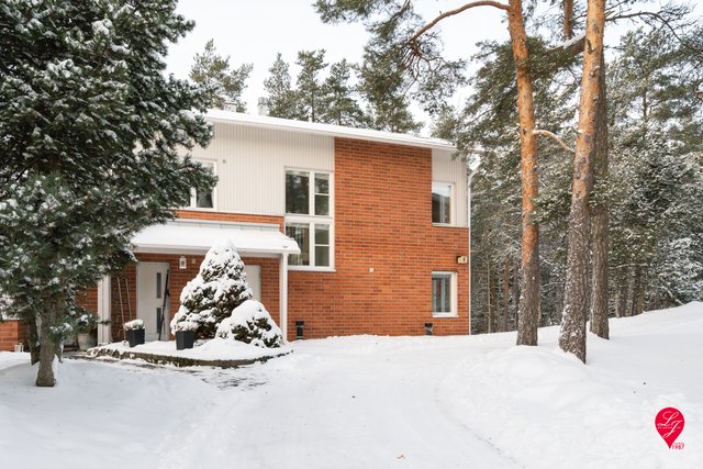 - Talon suojaisa hallinta-alue terasseineen rajautuu metsäiseen puistoon. Yläkerrassa avara ja vehreä metsänäkymä avautuu olo- ja työhuoneeseen sekä parvekkeelle.