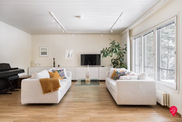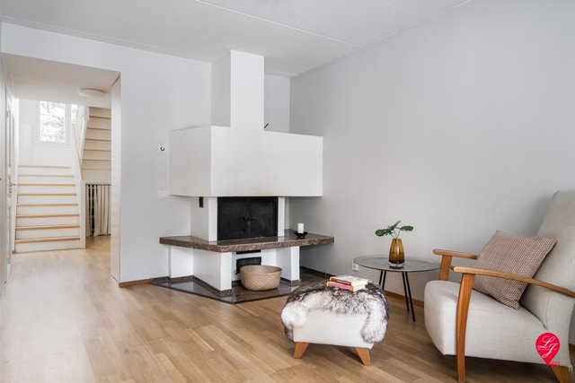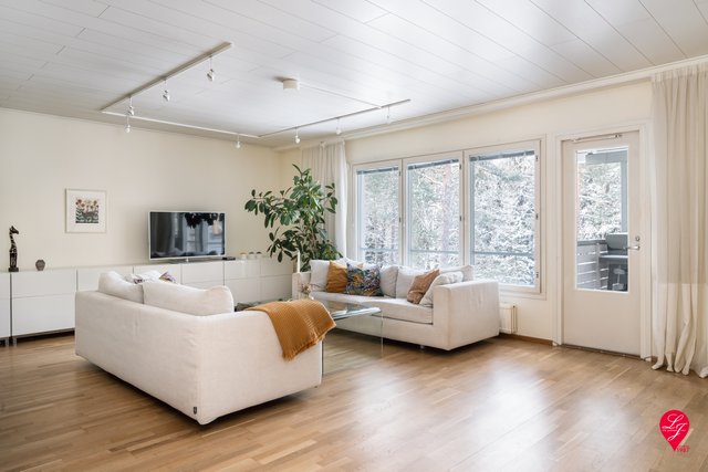 The beloved seaside walking route and the beach are only a few minutes’ walk away. Nearby you will also find the Iso Omena shopping center and the metro. Several schools and daycare centers (also English speaking) are located in the area.