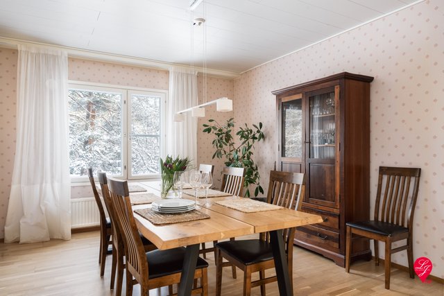 2025 Parkettilattiat hiottu. Alakerran tiloihin uudet kiinteät kattovalaisimet, eteisen kaapisto uusittu, seinät maalattu. Wc:n ja yläkerran kph:n pesualtaat ja kaapistot uusittu.