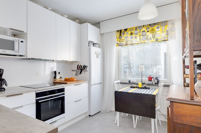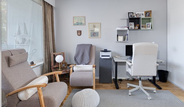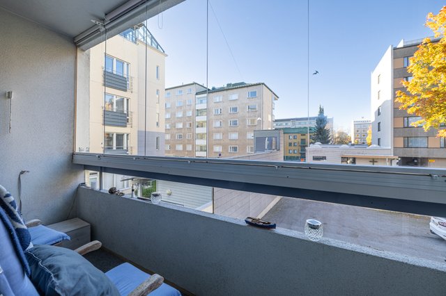 Tämä kokonaisuus tarjoaa monipuoliset mahdollisuudet sisustaa kotisi juuri sinun näköiseksi ja arkeen toimivaksi. Lasitettu parveke, mihin on käynti olohuoneesta, tuo mukavasti lisätilaa ja tarjoaa ihastuttavan paikan rentoutumiselle kaikissa sääolosuhteissa.