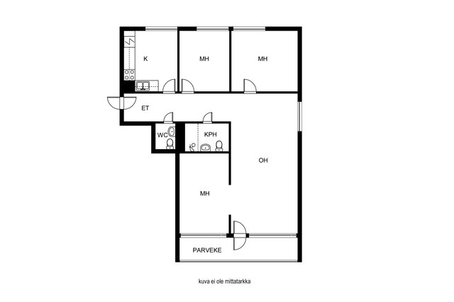 - Ei tarkistusmitattu. Pinta-alat saattavat tämän ikäisissä kohteissa (yhtiö rekisteröity ennen 01.01.1992) poiketa olennaisestikin asuinrakennusten nykyisten mittaustapojen ja standardien (SFS 5139) mukaan laskettavasta asuintilojen pinta-alasta. Pinta-ala voi siis olla edellä mainittua pienempi tai suurempi.