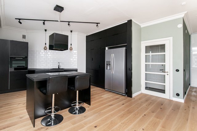 - Jääkaappipakastin, liesi, uuni, mikroaaltouuni, ja liesituuletin