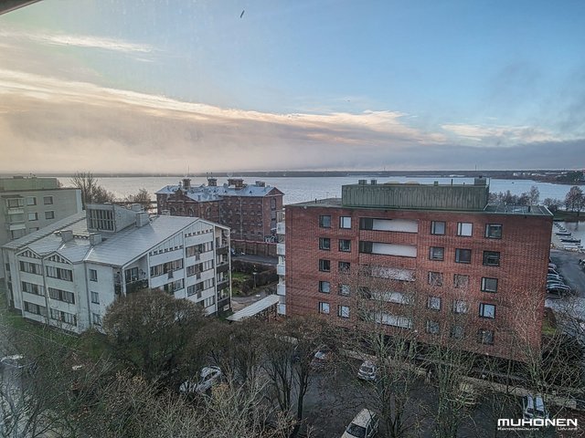 Vaasan keskustassa halutulla osoitteella Koulukatu 42:ssa, sijaitsee tilava ja valoisa viiden huoneen asunto, joka tarjoaa upeat näkymät ylimmästä kerroksesta. Tämä 119 neliömetrin asunto on erinomainen valinta perheelle tai tilaa arvostavalle. Asunnossa on kolme makuuhuonetta, työhuone, avara olohuone jossa takka ja moderni keittiö, jossa on kaikki tarvittavat mukavuudet lisäksi vielä vaatehuone. Parvekkeelta on merinäköala, se on lasitettu ja juuri laajennettu (25m2).