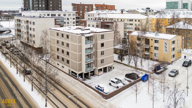Tervetuloa tutustumaan tähän kolmannen kerroksen saunalliseen kolmioon aivan Oulun keskustan palveluiden ääreltä!