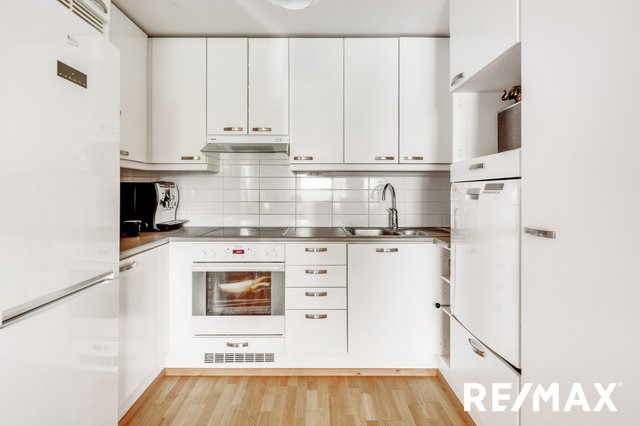 - Jääkaappipakastin, liesituuletin, astianpesukone, ja uuni