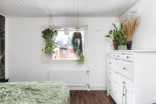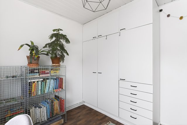 Vaatehuoneen rakentaminen päämakuuhuoneen yhteyteen. Pitkänmallisen makuuhuoneen jakaminen kahdeksi makuuhuoneeksi. Ilmanvaihdon tehostaminen läpivienneillä asuinhuoneisiin ja välipohjaan. Sälekaihdinten asentaminen kaikkiin ikkunoihin.