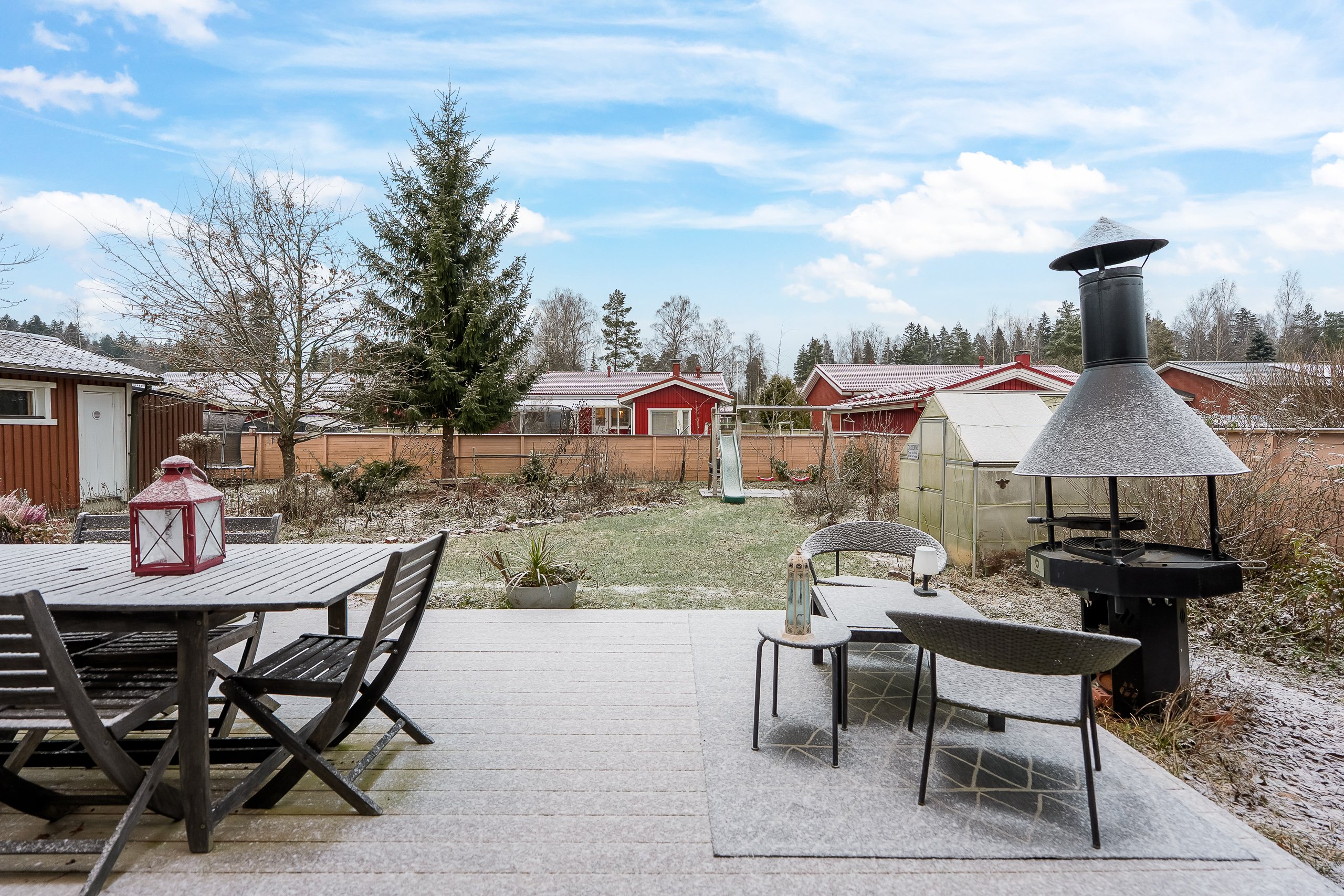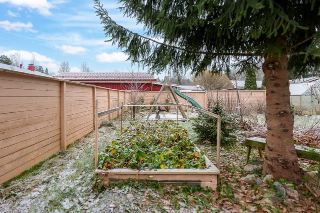 - Kasvatuslaatikot sekä kasvihuone valmiine istutusalueineen. Omena- ja kirsikkapuita, luumupuu, koristepihlaja ja etupihalla tuija-aita, useampia erilaisia herukkapensaita, useampi pensasmustikka, vadelmia sekä iso mansikkamaa. Kukkapenkissä kasvavat lukuisat erilaiset ruusut, monivuotiset perennat ja valtavan runsaat kuunliljat.