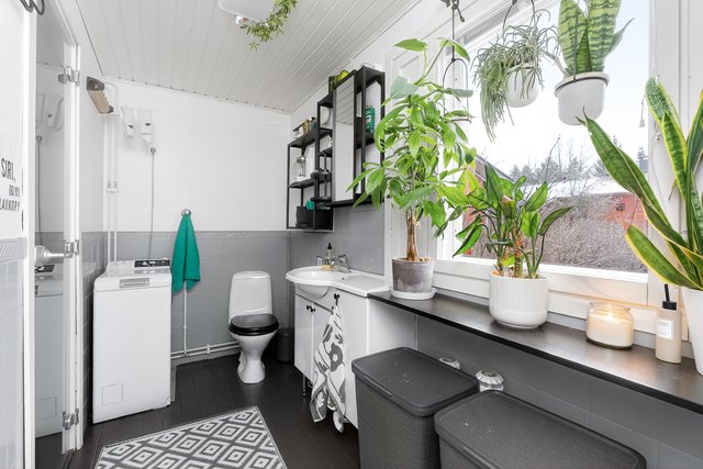 - Pesukoneliitäntä, lattialämmitys, ja pesuallas