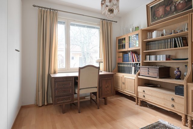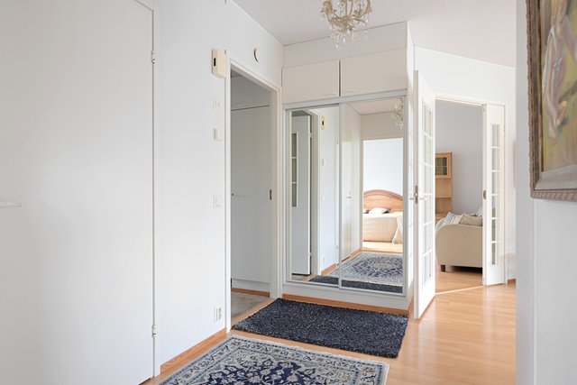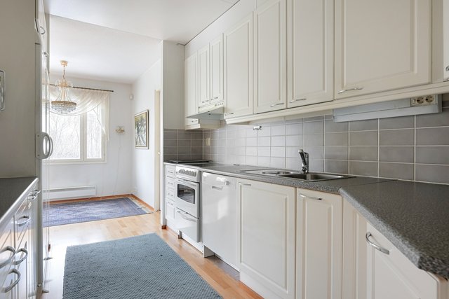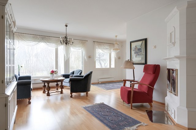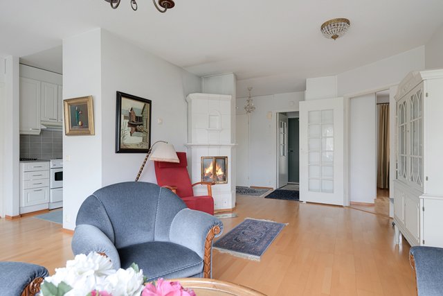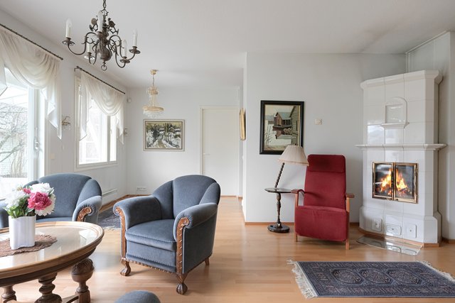 Asunnon olohuoneessa on kaunis varaava takka, joka tuo lämpöä ja tunnelmaa talvi-iltoihin. Keittiössä on kaikki tarvittavat varusteet, ja sieltä löytyy myös tilaa ruokailulle. Neljä makuuhuonetta tarjoaa runsaasti tilaa perheen tarpeisiin. Erillinen kodinhoitohuone helpottaa arjen askareita, ja sieltä on myös oma uloskäynti.