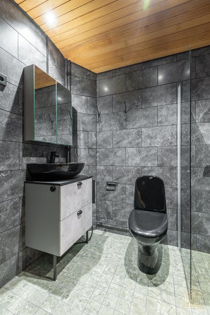 - WC-istuin, suihku, suihkuseinä, pesukoneliitäntä, lattialämmitys, peilikaappi, pesuallas, allaskaappi, ja bidee-suihku