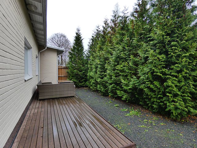 Oma piha-alue on asunnon eteläpuolella, joten piha-alue on aurinkoinen. Pihaa kiertää korkea lauta-aita.
