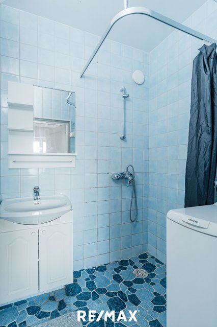 - Suihku, pesukoneliitäntä, peili, pesuallas, ja allaskaappi