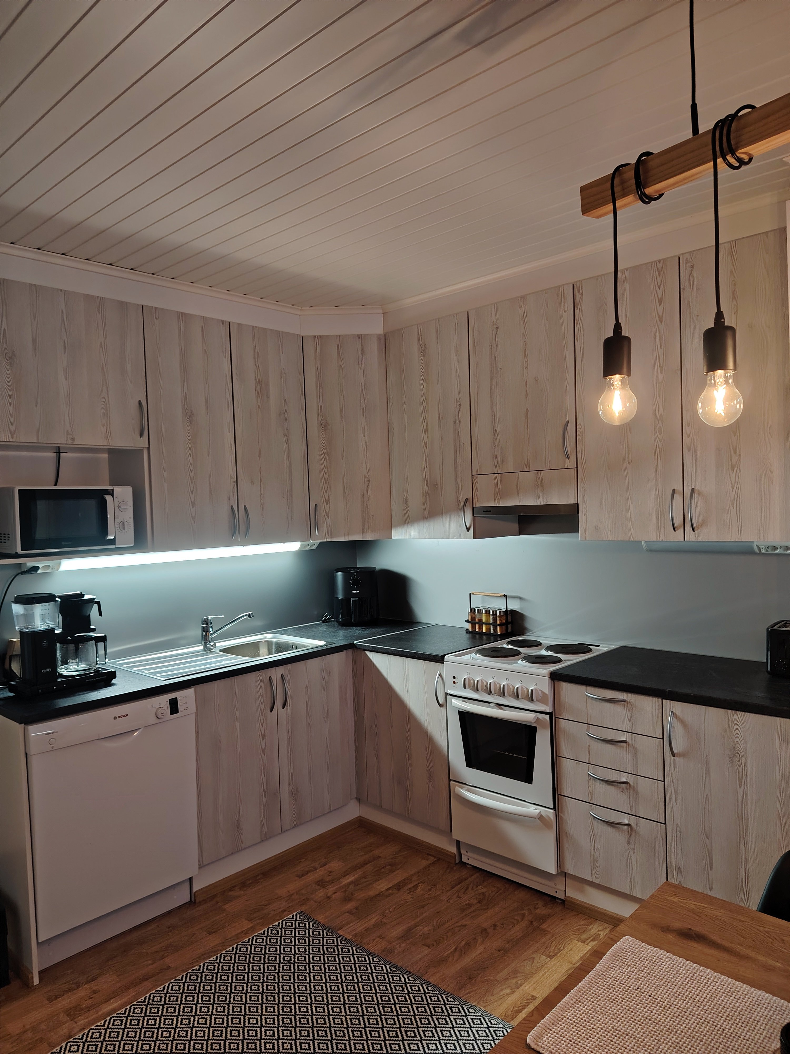 - Jääkaappipakastin, astianpesukone, liesituuletin, ja liesi