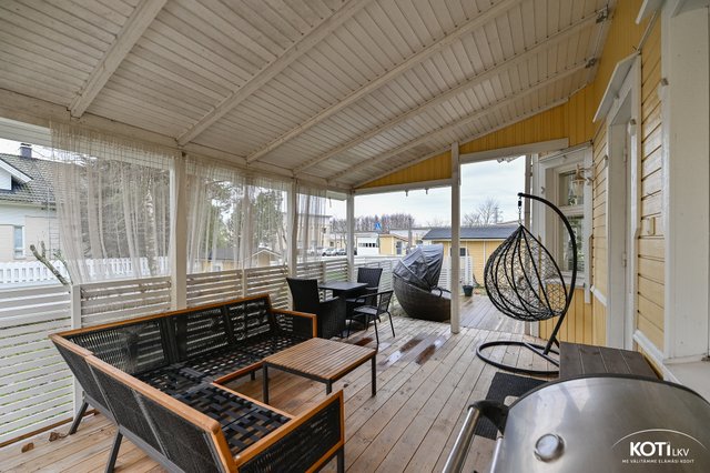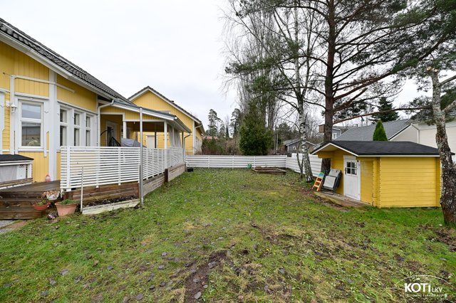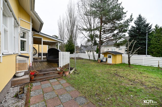 Iso, osin katettu terassi ja aurinkoinen aidattu piha etelään ja länteen tarjoavat upeat mahdollisuudet ulkoiluun ja yhdessäoloon. Pihalla on myös leikkimökki ja erillinen ulkorakennus, jossa varasto ja verstas. Autokatos ja tilava piha-alue mahdollistavat useamman auton pysäköinnin.