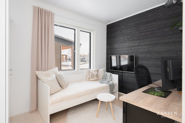 - Seinät on maalattu. Kylpyhuoneessa seinät on kaakeloitu. Olohuoneessa on tehosteseinä, jossa on rimoitus.