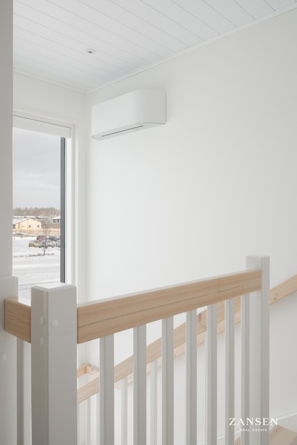 - Ikkunoiden ja ovien vekkikaihtimet. Portaikon moottorisoitu kaihdin. Ilmalämpöpumppu (Toshiba Haori Design).