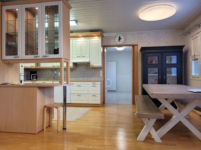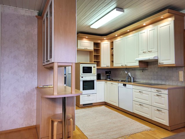Keittiö on 2002 päivitetty Puustellin kalusteilla. Saunaosasto tarjoaa rentouttavat löylyt puulämmitteisellä kiukaalla ja takkahuone toimii erinomaisena pukuhuone- ja kodinhoitotilana, josta on myös oma uloskäynti.