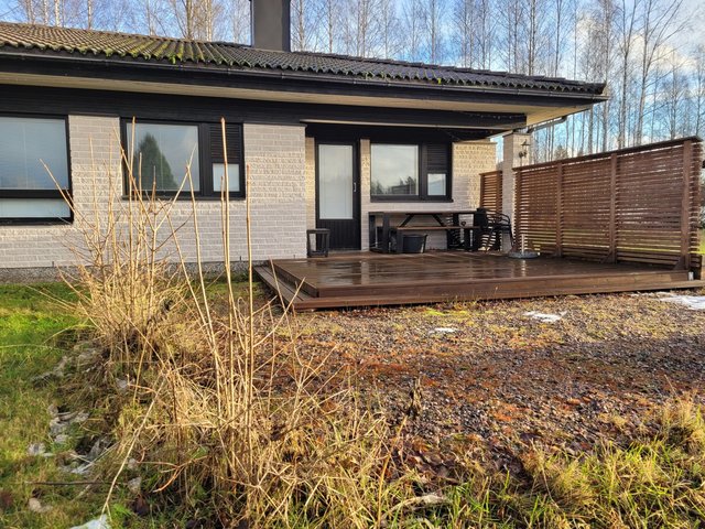 Talon piha-alue on vehreä ja hyvin hoidettu ja laajennettu terassi kutsuu nauttimaan ulkoilmasta. Lähialueen palvelut ovat kävelymatkan päässä, mikä tekee tästä sijainnista erityisen käytännöllisen monenkokoisille perheille.