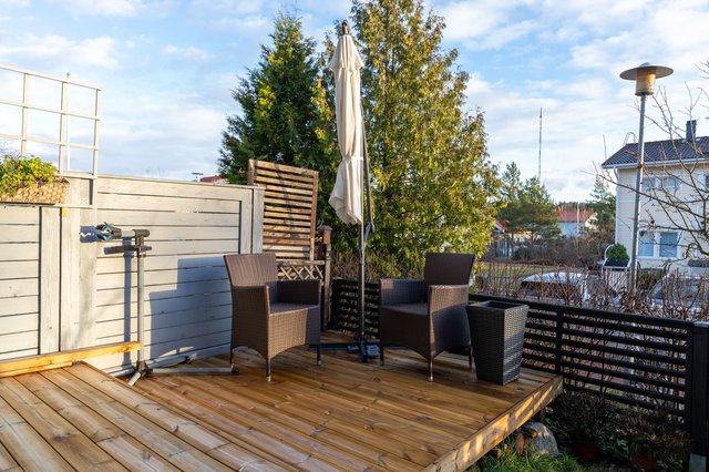 Terassien ja parvekkeiden kestopuuosien huoltokäsittely Valmis/2022
