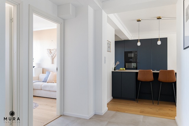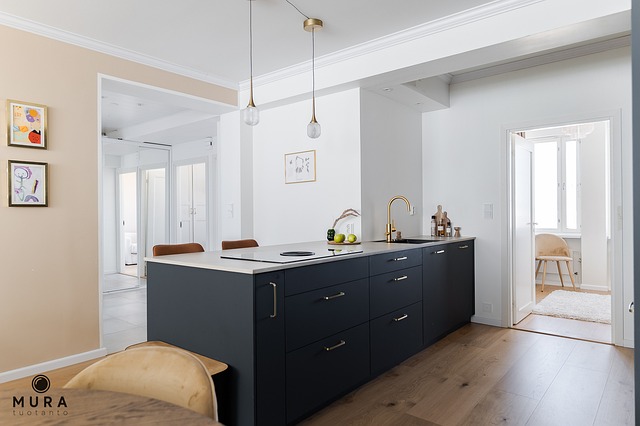 Tämä asunto on kokenut kokonaisvaltaisen remontin vuonna 2022. Eteinen on reilun kokoinen, ja sen yhteydessä on erillinen wc. Keittiö, olohuone sekä ruokailutila on yhdistetty modernisti yhtenäiseksi tilaksi. Keittiöstä löytyy paljon kaappitilaa, sekä integroidut kodinkoneet, kaunis suuri saareke, jonka liedeksi on valittu monien suosima Bora. Keittiön kruunaa kullan väriset metalliviimeistelyt.