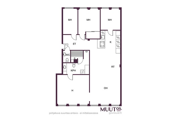 - Pinta-ala ei ole tarkistusmitattu. Hinta ei ole pinta-alaperusteinen. Huoneiston pinta-ala on yhtiöjärjestyksen, isännöitsijäntodistuksen ja myyjän ilmoituksen mukaan 105 m2. Edellä mainittu pinta-ala saattaa tämän ikäisessä kohteessa poiketa olennaisestikin huoneiston nykyisen ja rakentamisaikaisen mittaustapojen ja standardien mukaan laskettavasta pinta-alasta. Huoneiston todellinen pinta-ala voi olla yhtiöjärjestyksessä, isännöitsijäntodistuksessa ja esitteessä mainittua pienempi tai suurempi. Myynnissä ja markkinoinnissa käytetty huoneistoselitelmää "5h, avok, kph/wc, s", yhtiöjärjestyksen mukaan huoneistoselitelmä "4h+k"