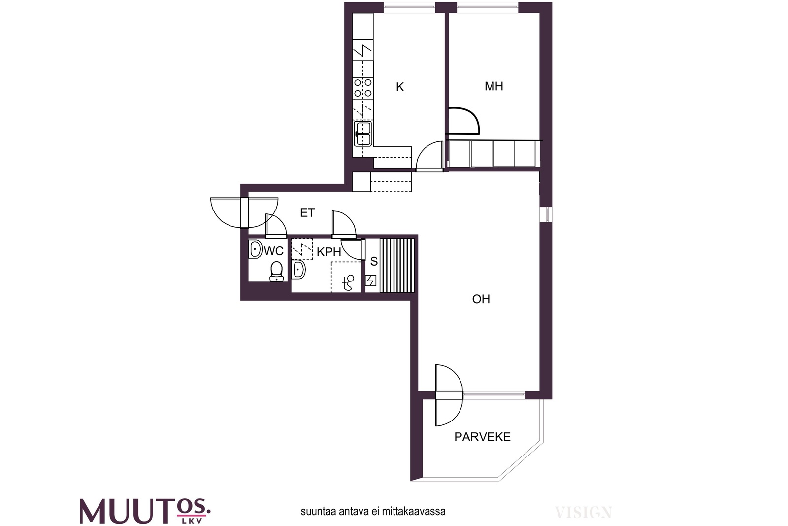 - Edellä mainittu pinta-ala saattaa tämän ikäisessä kohteessa poiketa olennaisestikin huoneiston nykyisen ja rakentamisaikaisen mittaustapojen ja standardien mukaan laskettavasta pinta-alasta. Huoneiston todellinen pinta-ala voi olla yhtiöjärjestyksessä, isännöitsijäntodistuksessa ja esitteessä mainittua pienempi tai suurempi. Hinta ei ole pinta-alaperusteinen. Yhtiöjärjestyksen mukainen huoneistoselitelmä: 2h+k+s