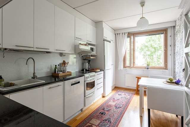 - Kiinteät kaapistot, kiinteät valaisimet, verhokiskot ja naulakko.