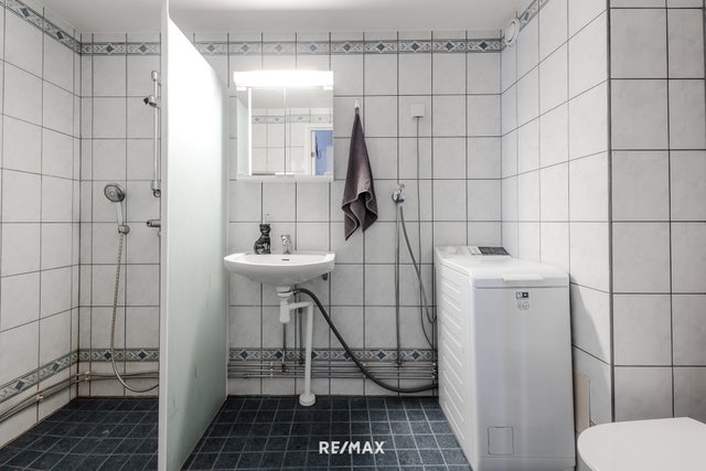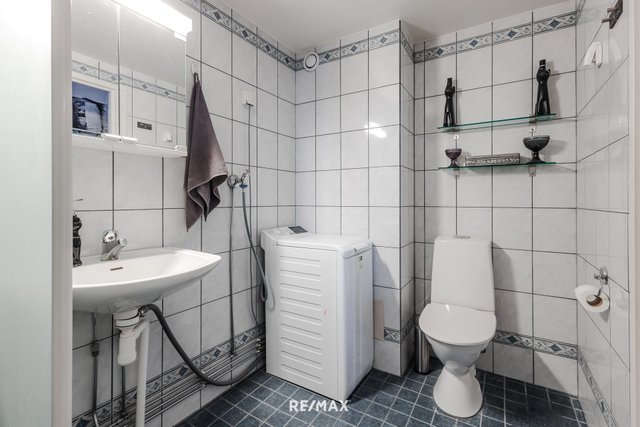 - Suihku, wc-istuin, suihkuseinä, pesukoneliitäntä, pesuallas, ja peilikaappi
