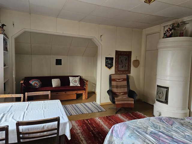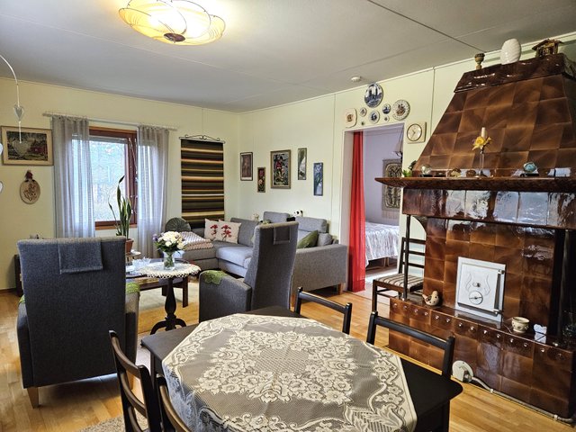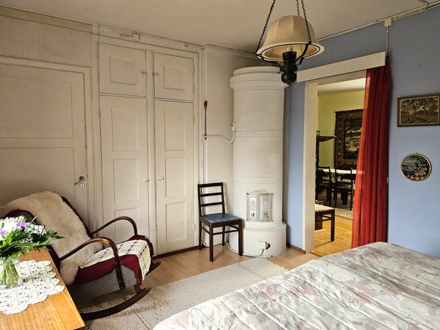 - Kaakelitakka olohuoneessa ja pönttöuunit kahdessa makuuhuoneessa. Tulisijoihin asennettu sähkövastukset (yösähkö)
