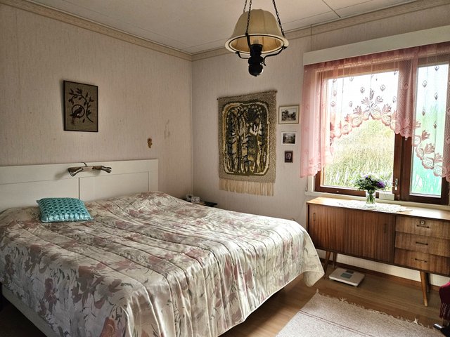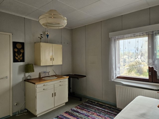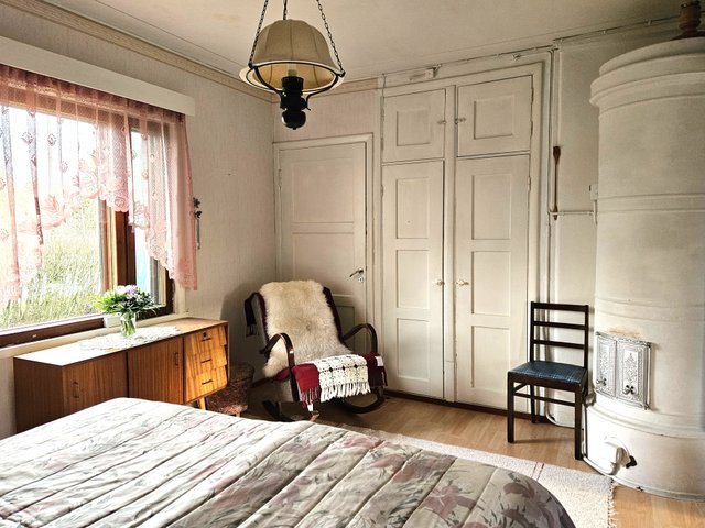 - Alakerran makuuhuone: lattia laminaattia, seinät maalattu ja tapetoitu Yläkerran makuuhuoneet: lattiat muovimattoa, seinät sisustuslevyä