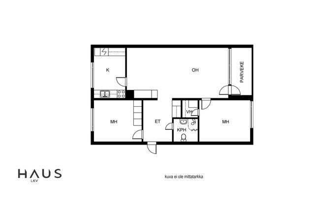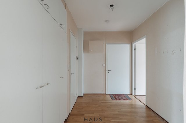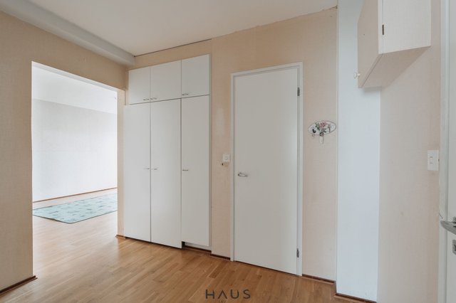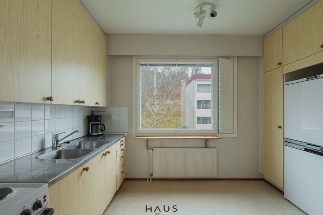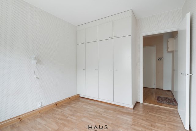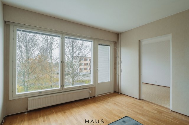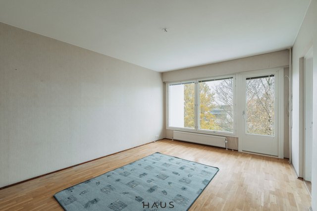 Huoneisto sijaitsee hissittömän talon toisessa kerroksessa. Huoneiston pohjaratkaisu on mitä toimivin; isosta olohuoneesta on käynti parvekkeelle ja huone yhdistyy oivallisesti keittiön kanssa. Molemmat makuuhuoneet ovat selkeästi toisistaan erillään, joten täällä saa omaa rauhaa. Säilytystilaa on runsaasti niin kaapistoissa kuin vaatehuoneessa.