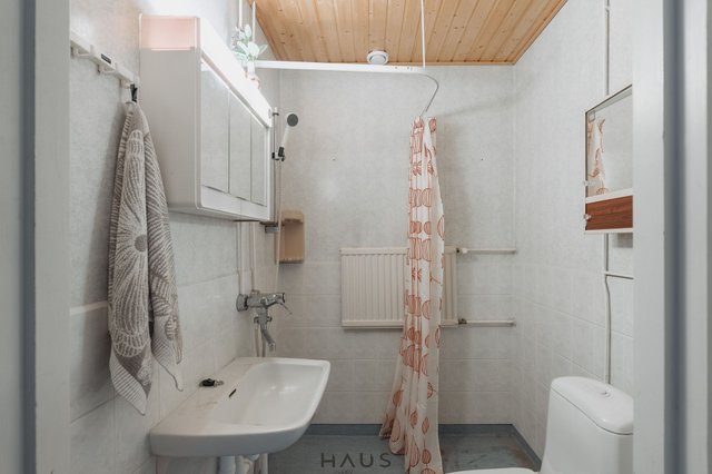 - WC-istuin, suihku, peilikaappi, ja pesuallas