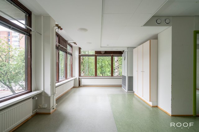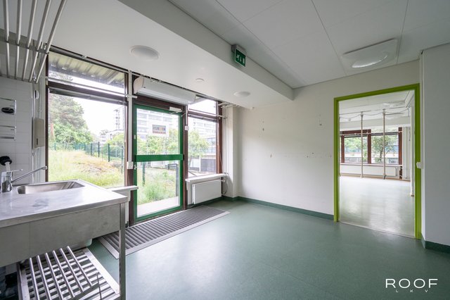 Aiemmin päiväkotina toimineesta 270m2 tilasta saat rakennettua useamman huoneiston kokonaisuuden. Oma sisäänkäynti rakennuksen ensimmäisessä kerroksessa tarjoaa mahdollisuuden moneen eri ratkaisuun.