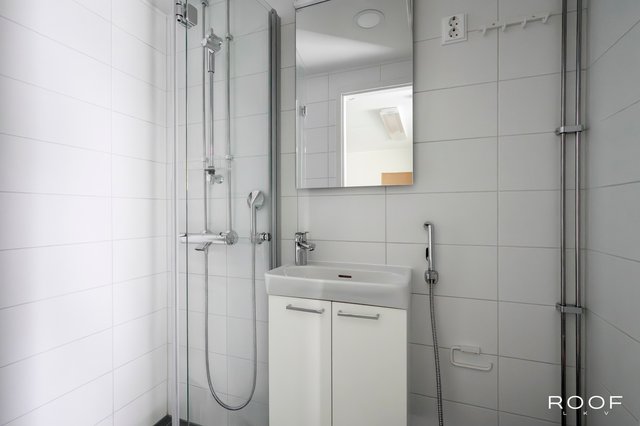 - Kylpyhuone 1 VARUSTUS: Suihku, taittuva suihkuseinä, wc-istuin, käsisuihku, allaskaappi, peilikaappi. SEINÄT: Laatta. LATTIA: Laatta.