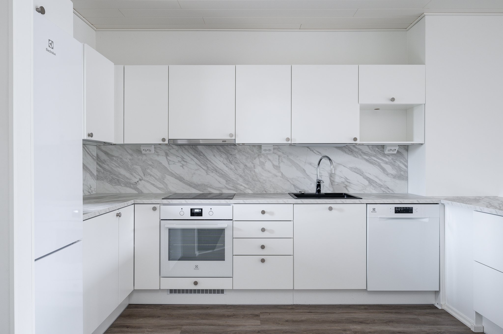 - Jääkaappipakastin, liesituuletin, astianpesukone, ja erillisuuni