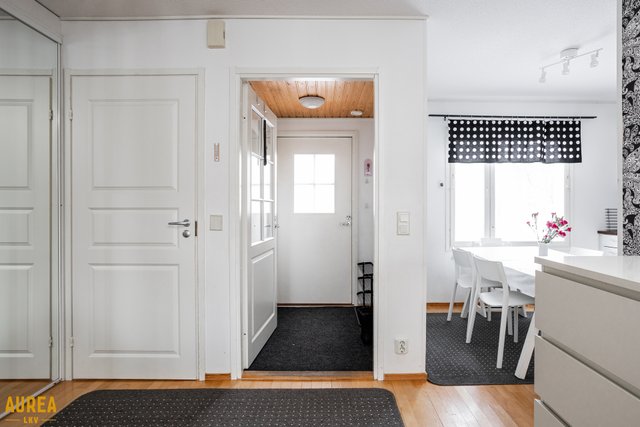 Koko asunnossa on mukavuutta lisäävä vesikiertoinen lattialämmitys (kaukolämpö) sekä koneellinen ilmanvaihto lämmön talteenotolla. Etupihan katettu sisääntulo tekee arjesta sujuvan, ja oma autopaikka löytyy talon vierestä.