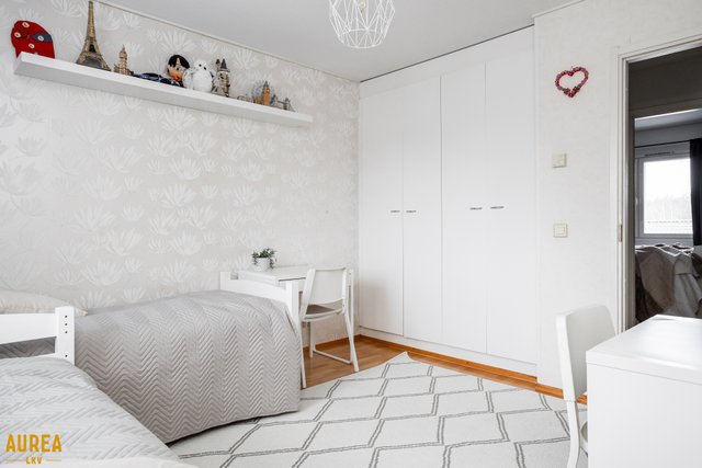 - Yläkerrassa kolme makuuhuonetta. Jokaisessa huoneessa kiintokaapistot.