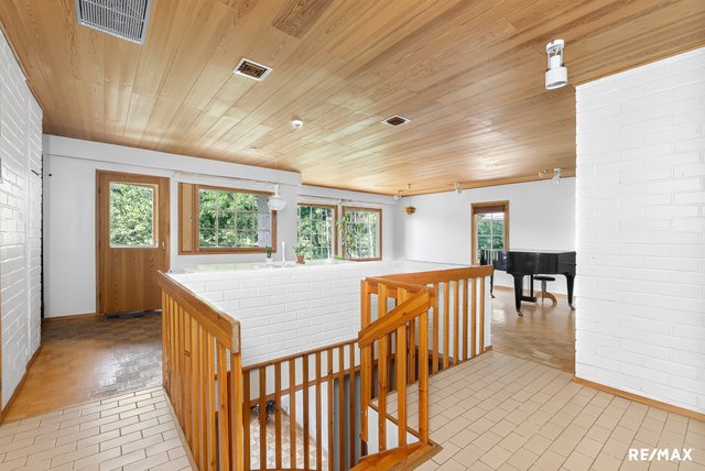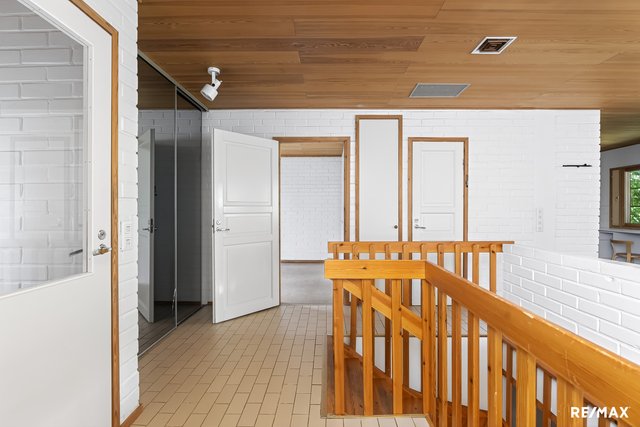 - Sisääntulo aulassa laattalattiat ja liukuovikaapisto. Alakerrassa takkahuone: Laattalattiat/parketti, seinät maalattu tai tiili. Kulku takapihalle. Askarteluhuone: huonekorkeus tässä tilassa n. 205 cm. Seinät maalattu tai tiili. Varastohuone alakerrassa: Tähän varastotilaan ei ole rakennusvaiheessa haettu rakennuslupaa eikä sitä ole lopputarkastettu. Ei täytä asuinhuoneen määritelmää liian vähäisen huonekorkeuden takia (n. 205 cm).