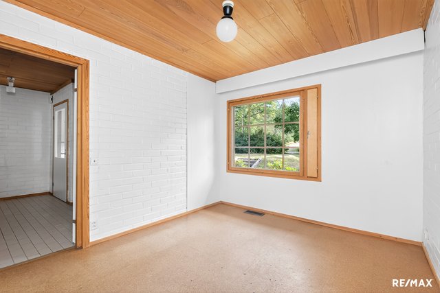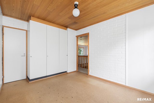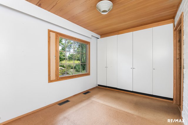 - Sisääntulokerroksessa kaksi makuuhuonetta, joista toisen yhteydessä vaatehuone. Lattiat korkkia, seinät maalattu tai tiili.