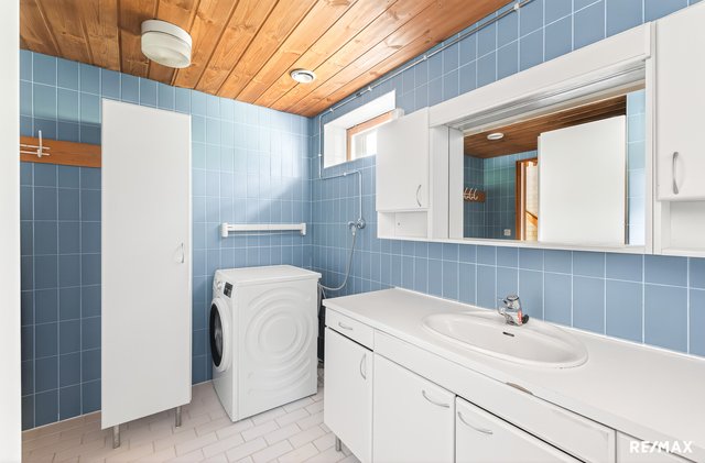 - Kylpyhuone remontoitu 2003. Kylpyamme uusittu 2004, samoin osa kylpyhuoneen laatoituksista. Varustus: Kylpyamme, suihku, kylpyhuonekaapisto, allas, allaskaappi, peilikaappi, pesukoneliitäntä. Laattalattia, seinät kaakeloitu.