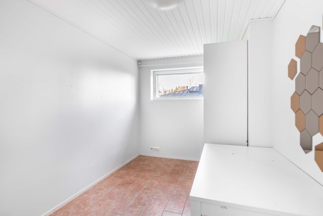 Alakerran tilat ovat helposti muunneltavissa moneen käyttöön. Kaksi työhuonetta toimivat erinomaisesti makuuhuoneina, etätyötiloina tai harrastehuoneina. Takkahuoneesta on käynti suurelle länsipihalle. Tilavassa kylpyhuoneessa on kaksi suihkua sekä sauna, ja arkea helpottaa käytännöllinen kodinhoitohuone. Säilytystilaa on runsaasti.