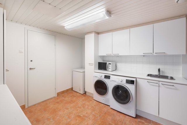 - Pesuallas, pyykkikaapit, keskuspölynimuri, pöytätaso, ja pesukoneliitäntä