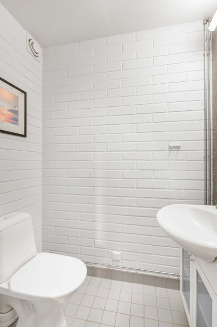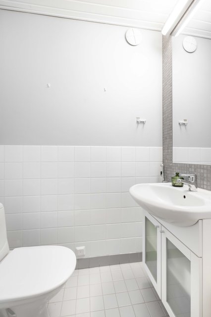 - Alakerran kph seinät: valkoinen ja harmaa laatta, Lattia: harmaa laatta Katto: paneeli