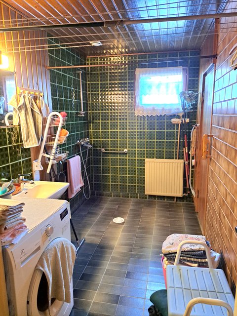 - Suihku, pesukoneliitäntä, lattialämmitys, ja ikkuna ulos