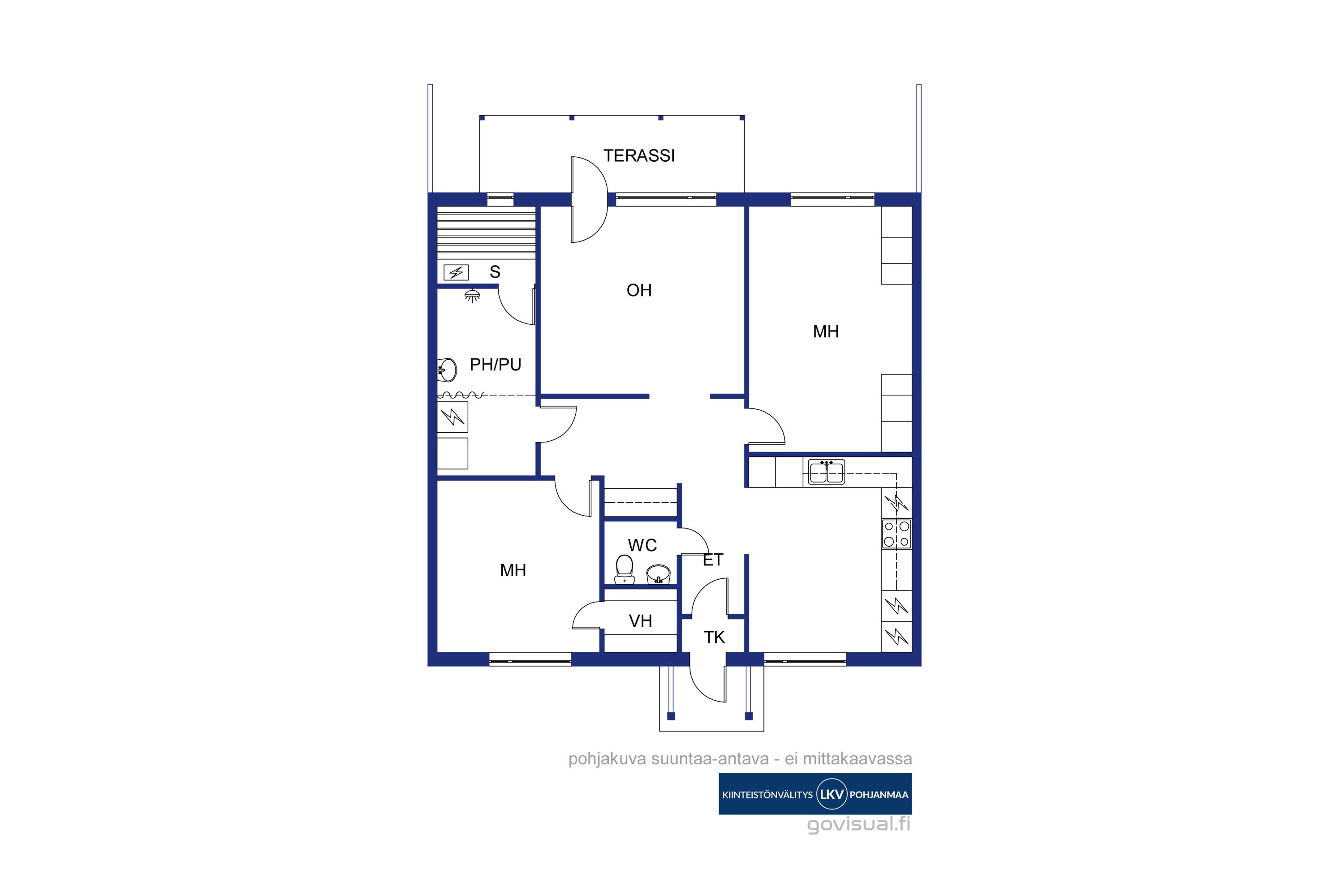 - Ei tarkistusmitattu. Pinta-alat saattavat tämän ikäisissä kohteissa (yhtiö rekisteröity ennen 01.01.1992) poiketa olennaisestikin asuinrakennusten nykyisten mittaustapojen ja standardien (SFS 5139) mukaan laskettavasta asuintilojen pinta-alasta. Pinta-ala voi siis olla edellä mainittua pienempi tai suurempi.