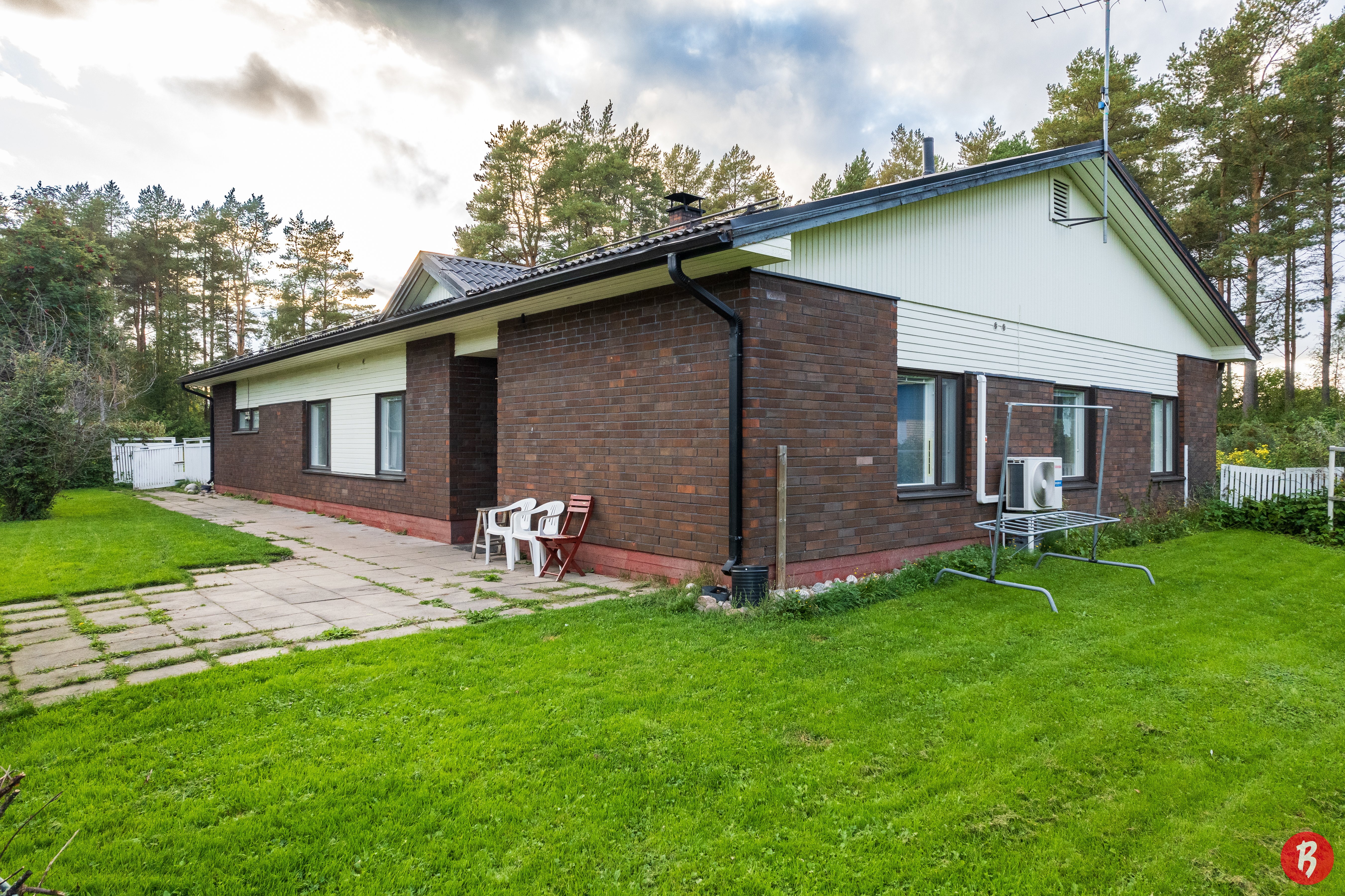 - Etupiha aidattu, takapihalla terassi. Autokatos ja parkkialue asfaltoitu. Piha hoidettua nurmea ja istutuksia kuten marjapensaita.