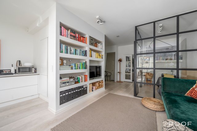Kauniisti uudistettu, valoisa kaksio toimivalla läpitalon pohjaratkaisulla. Avoin keittiö varusteltu kaasuliedellä, olohuoneessa näyttävä mittatilauskirjahylly sekä tyylikäs lasiseinäinen huone, joka soveltuu erinomaisesti työtilaksi, lukuhuoneeksi tai vierashuoneeksi.